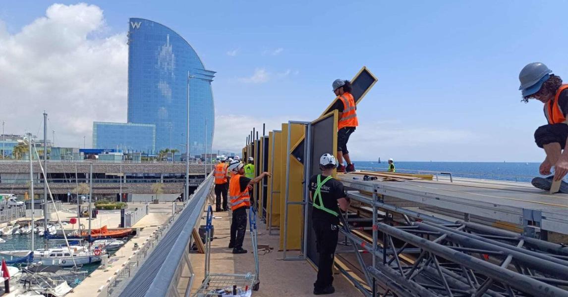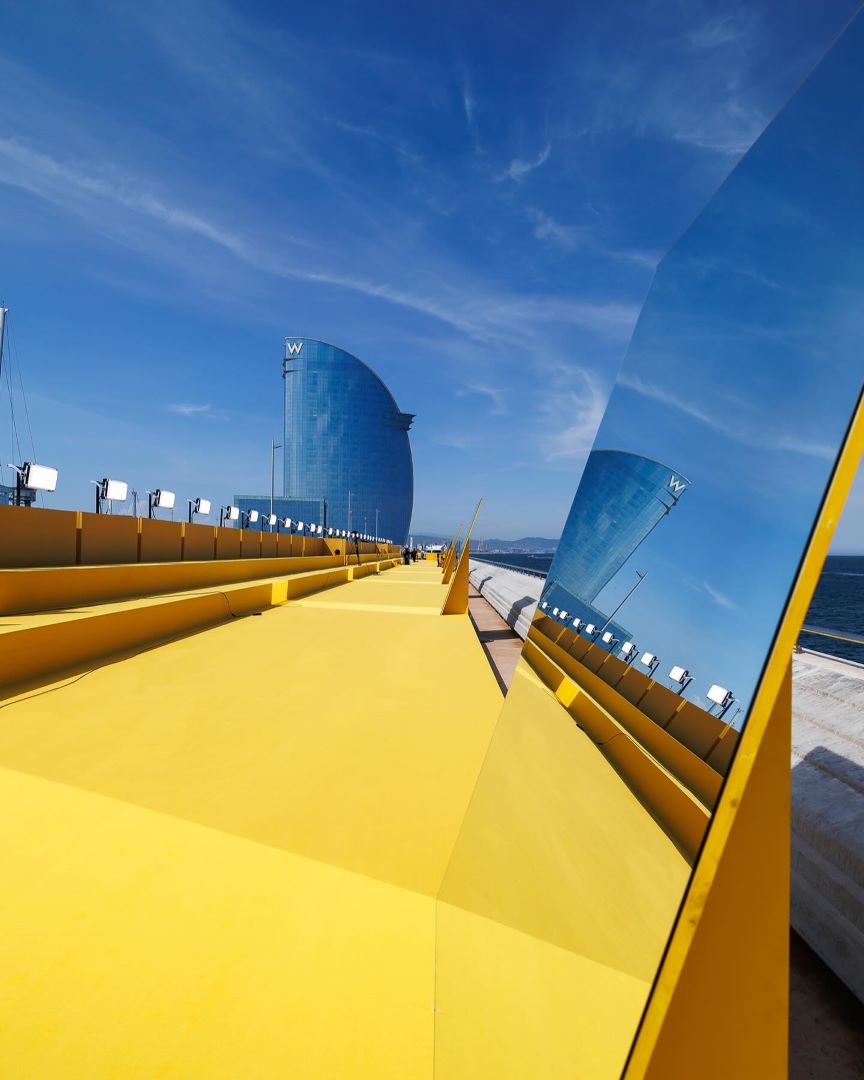 ShowTex Spain utilizó paneles AV Drop, vestidos con tejido Universal 250 BB Print, impreso en un vibrante amarillo personalizado, para construir una cautivadora pasarela junto al mar. La flexibilidad y adaptabilidad de nuestras paredes divisorias para eventos les permitió diseñar un espacio atractivo y funcional que complementó el innovador desfile de moda de la conocidísima marca Desigual.